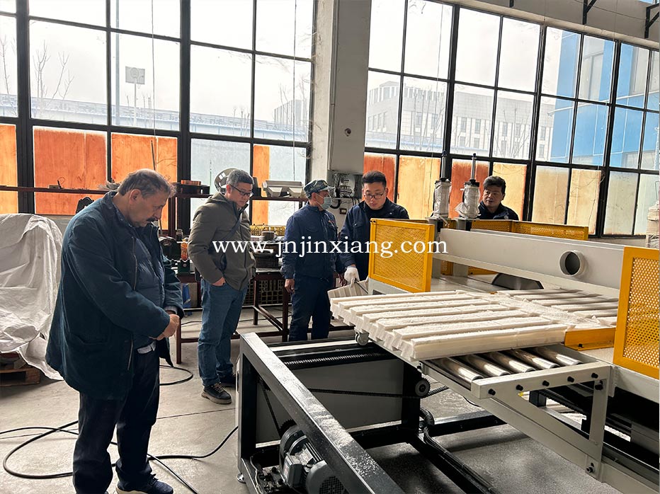 臨近春節(jié),工廠依然在忙碌的趕工期,上周五,公司又迎來了來自阿曼的客戶,客戶在我公司購買了XPS擠塑板開槽機,驗收設備的同時客戶又參觀工廠并表達了合作意向。