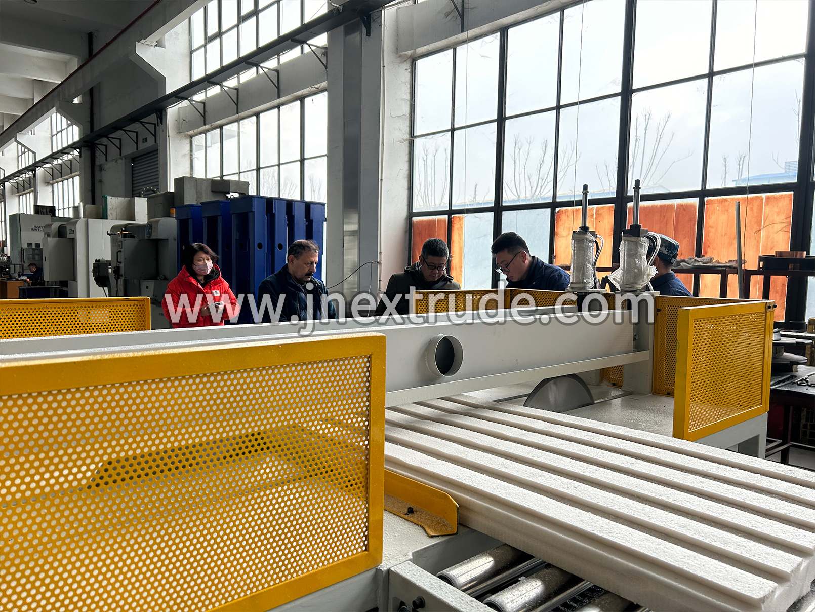表面拉毛開槽機(jī)組采用機(jī)架、組合式合金刀頭、電機(jī)、氣壓裝置、滾輪適用于采用螺旋刀組將擠塑板表面去皮打毛,獲得所需要的表面結(jié)構(gòu)以確保板材的墻面附著力。利用高速旋轉(zhuǎn)鋸片在板材表面打磨出具有一定深度和寬度的雨槽,以增加其表面黏結(jié)性能。